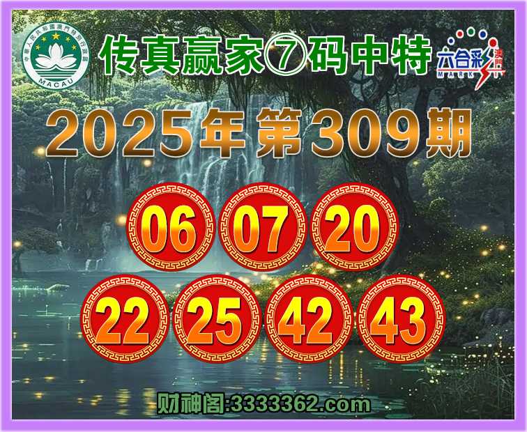 309期:『传真赢家』⑦码中特✨【06.07.20.22.25.42.43】开:06