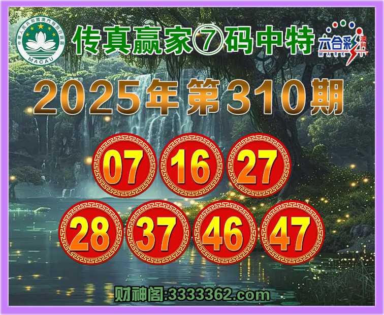 310期:『传真赢家』⑦码中特✨【07.16.27.28.37.46.47】开:16