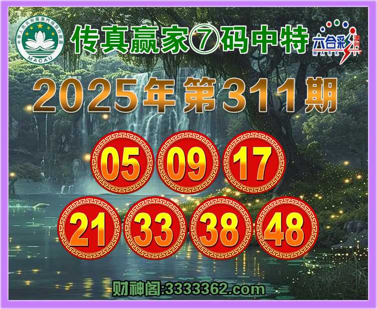 311期:『传真赢家』⑦码中特✨【05.09.17.21.33.38.48】开:00准