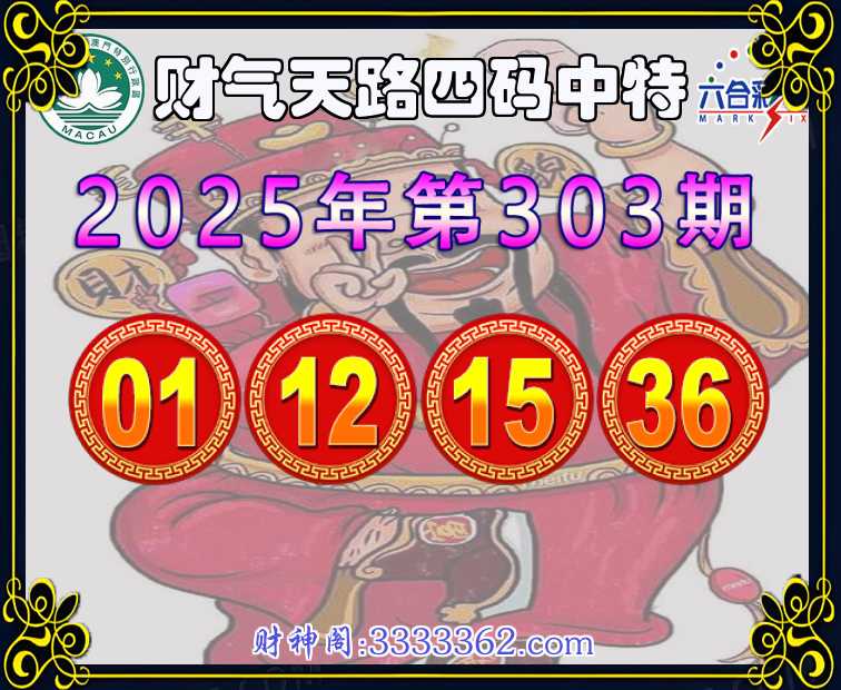 303期:《财气天路》 📸四码中特📸【01.12.15.36】开:15