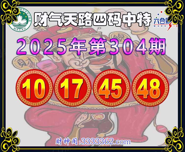 304期:《财气天路》 📸四码中特📸【10.17.45.48】开:48