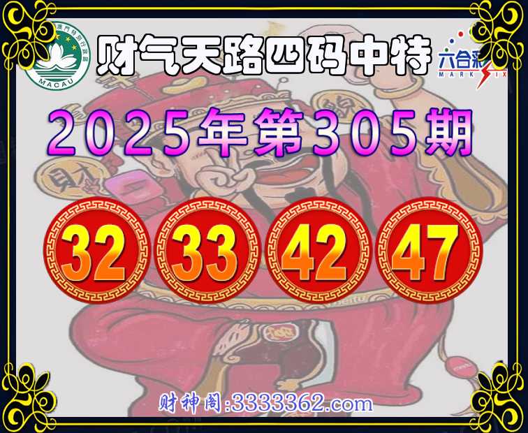 305期:《财气天路》 📸四码中特📸【32.33.42.47】开:42