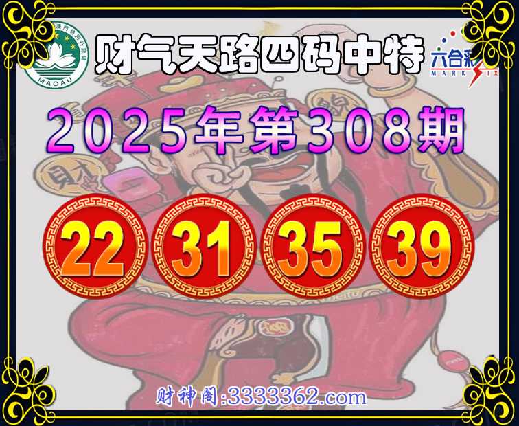 308期:《财气天路》 📸四码中特📸【22.31.35.39】开:39