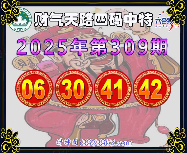 309期:《财气天路》 📸四码中特📸【06.30.41.42】开:06