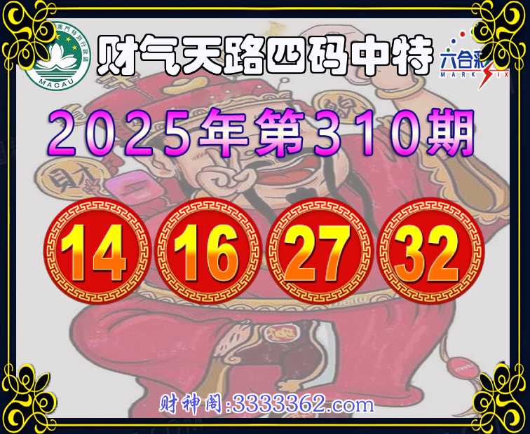 310期:《财气天路》 📸四码中特📸【14.16.27.32】开:16