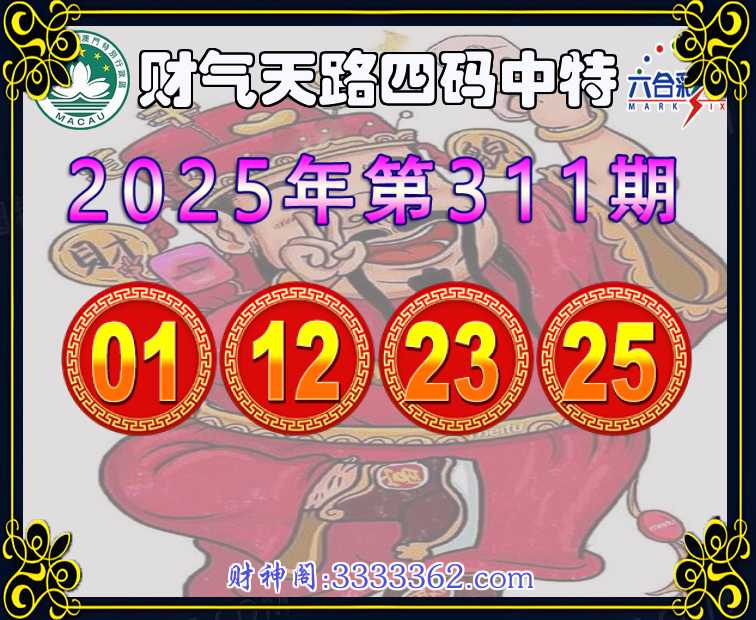 311期:《财气天路》 📸四码中特📸【01.12.23.25】开:00准