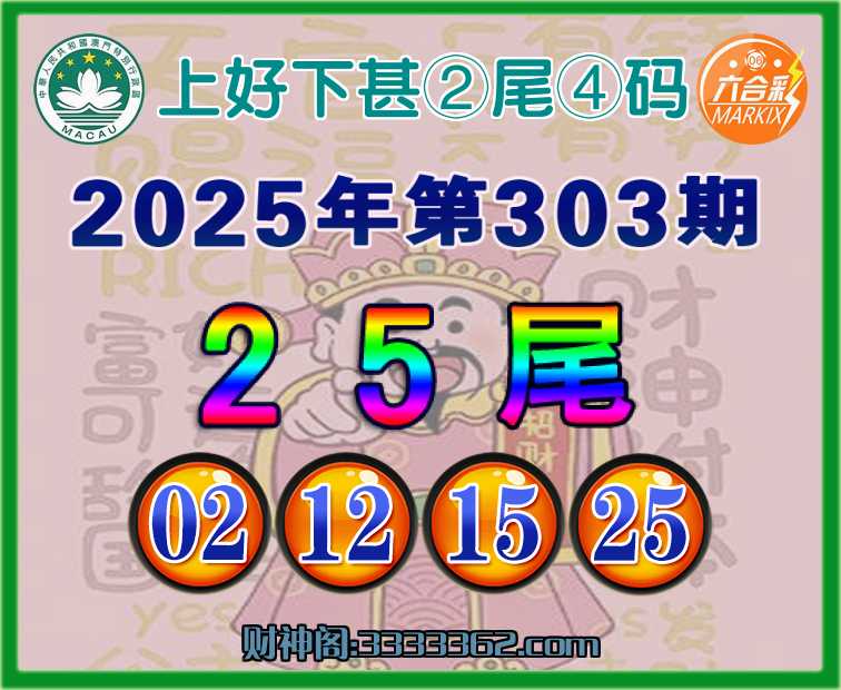 303期:〖上好下甚〗 🌅②尾④码🌅【25尾主:02.12.15.25】开:15