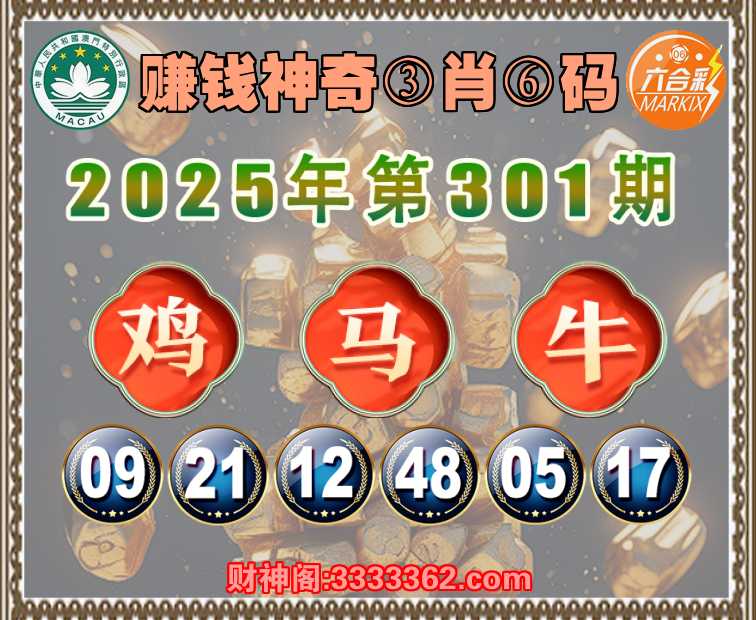 301期:『赚钱神奇』③肖⑥码⚽【鸡马】开:牛05