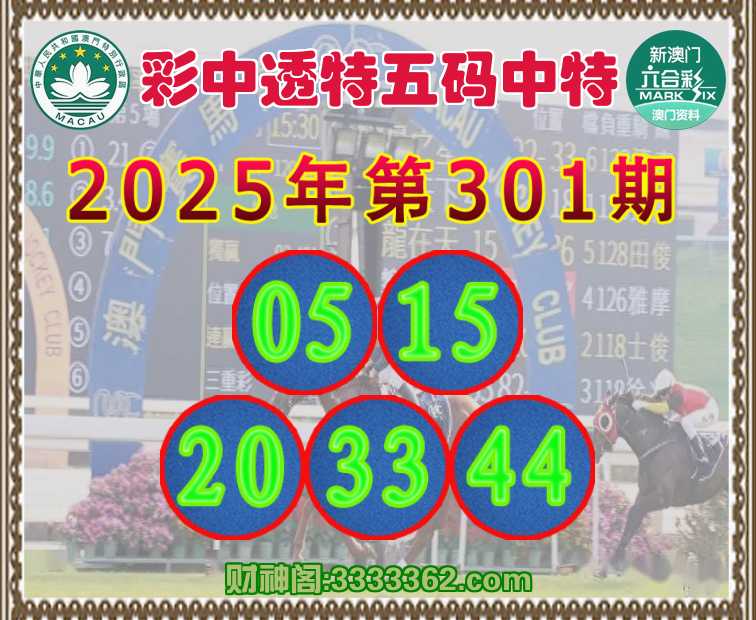 301期:【彩中透特】 👛五码中特👛【05.15.20.33.44】开:05