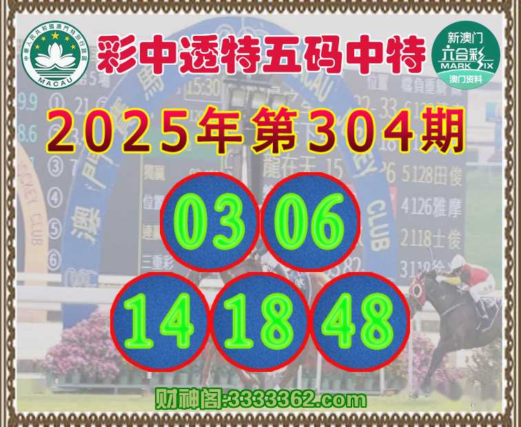 304期:【彩中透特】 👛五码中特👛【03.06.14.18.48】开:48