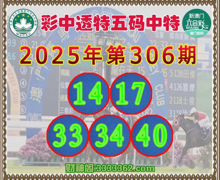 306期:【彩中透特】 👛五码中特👛【14.17.33.34.40】开:17