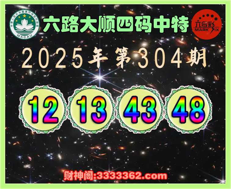 304期:『六路大顺』 🎖️四码中特🎖️【12.13.43.48】开:48