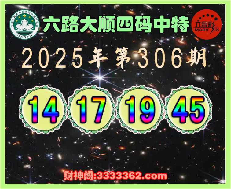 306期:『六路大顺』 🎖️四码中特🎖️【14.17.19.45】开:17