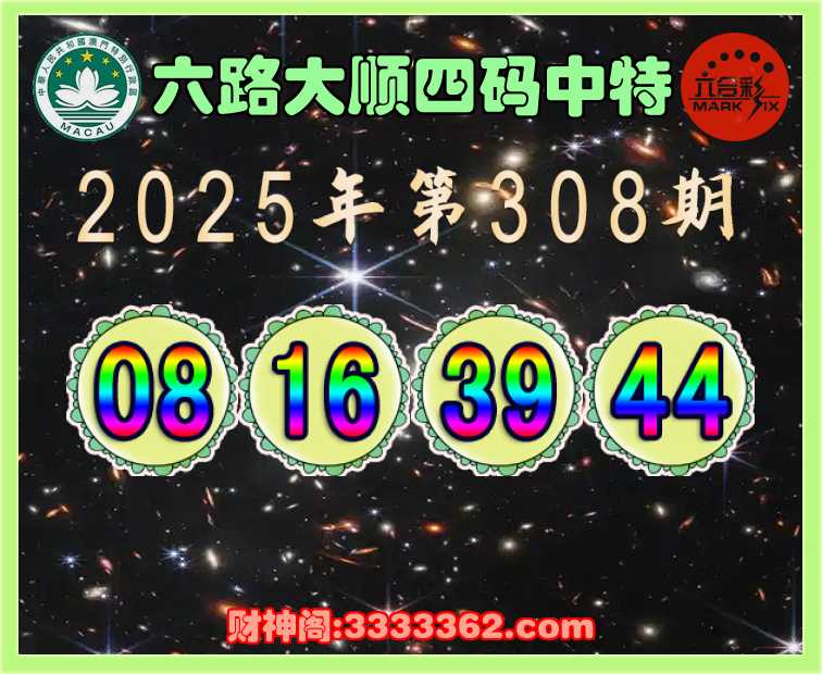 308期:『六路大顺』 🎖️四码中特🎖️【08.16.39.44】开:39