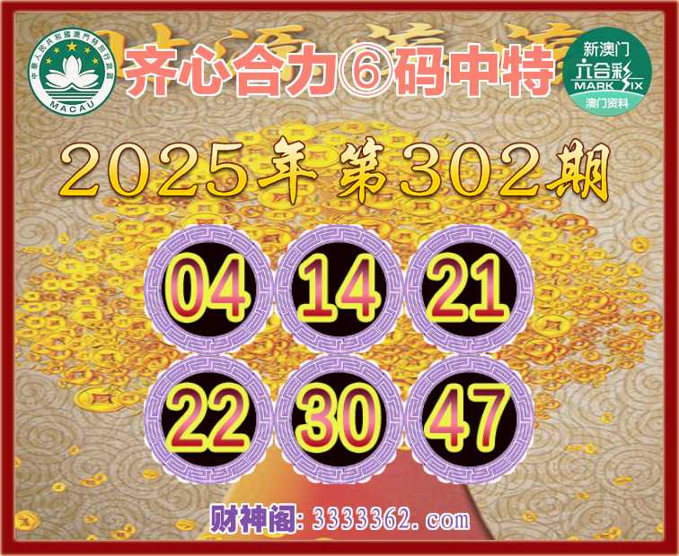 302期:〖齐心合力〗 🤘⑥码中特🤘【04.14.21.22.30.47】开:22