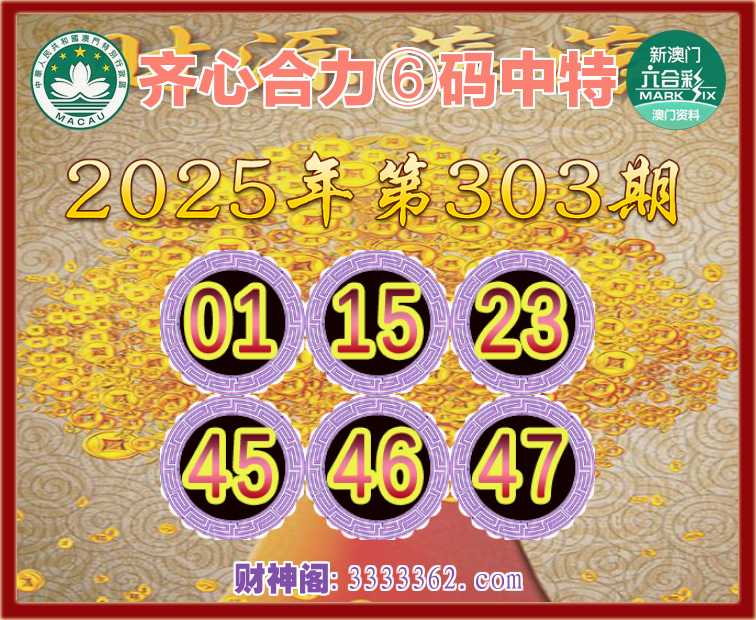 303期:〖齐心合力〗 🤘⑥码中特🤘【01.15.23.45.46.47】开:15