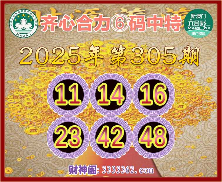 305期:〖齐心合力〗 🤘⑥码中特🤘【11.14.16.23.42.48】开:42