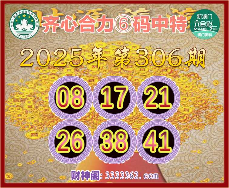 306期:〖齐心合力〗 🤘⑥码中特🤘【08.17.21.26.38.41】开:17