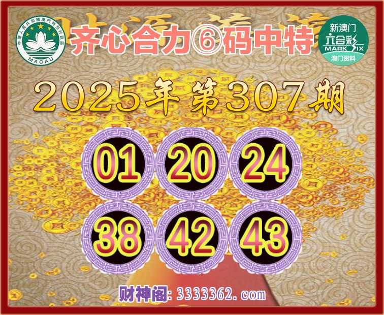 307期:〖齐心合力〗 🤘⑥码中特🤘【01.20.24.38.42.43】开:20