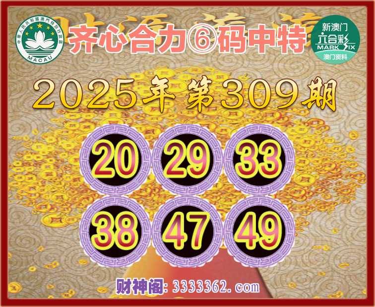 309期:〖齐心合力〗 🤘⑥码中特🤘【20.29.33.38.47.49】开:00准