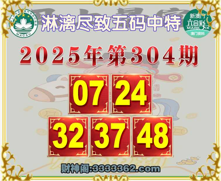 304期: 淋漓尽致 🍄五码中特🍄【07.24.32.37.48】开:48