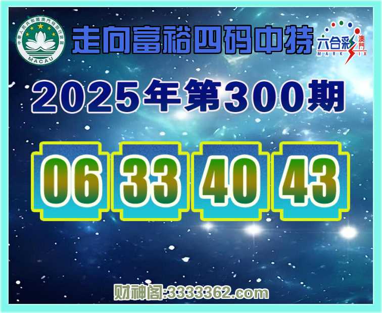 300期: 😍《走向富裕》 😍四码中特😍【06.33.40.43】开:40