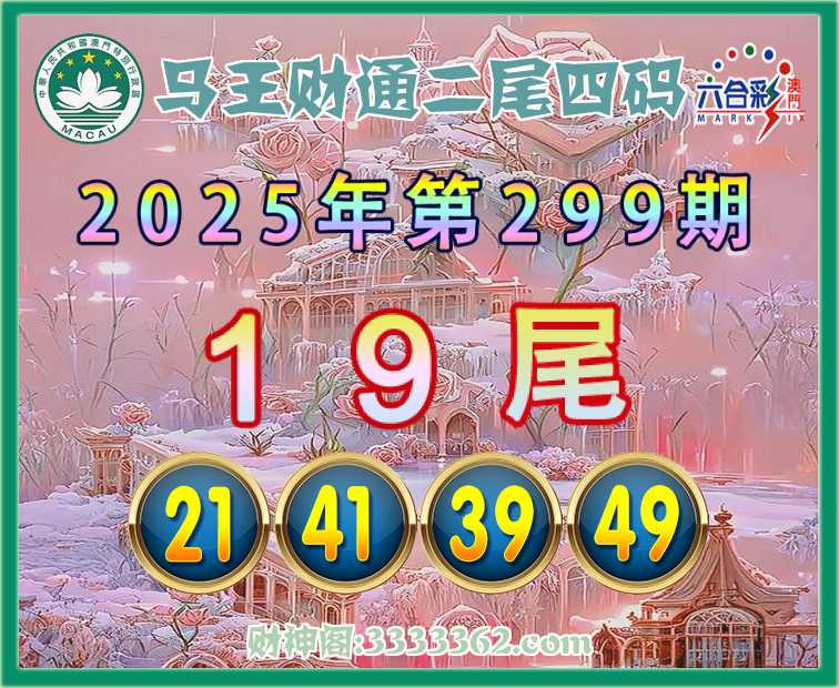 299期:《马王财通》 💄二尾四码💄【19尾主:21.41.39.49】开:49