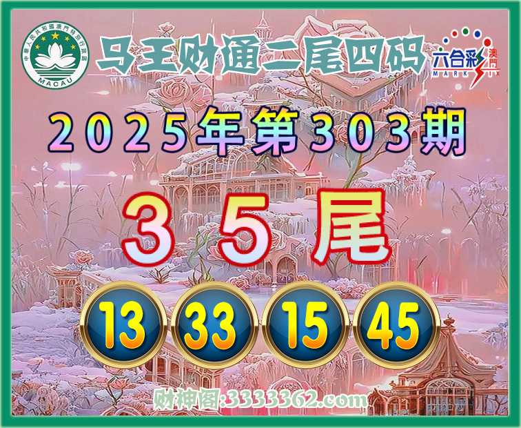 303期:《马王财通》 💄二尾四码💄【35尾主:13.33.15.45】开:15
