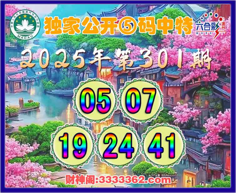 301期:〖独家公开〗 🚵‍♀️⑤码中特🚵‍♀️【05.07.19.24.41】开:05