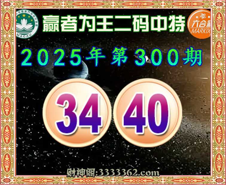 300期:《赢者为王》 👑二码中特👑【34.40】开:40