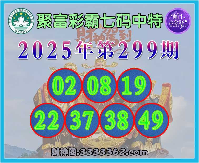 299期:〖聚富彩霸〗 ✌️七码中特✌️【02.08.19.22.37.38.49】开:49