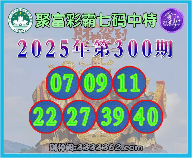 300期:〖聚富彩霸〗 ✌️七码中特✌️【07.09.11.22.27.39.40】开:40