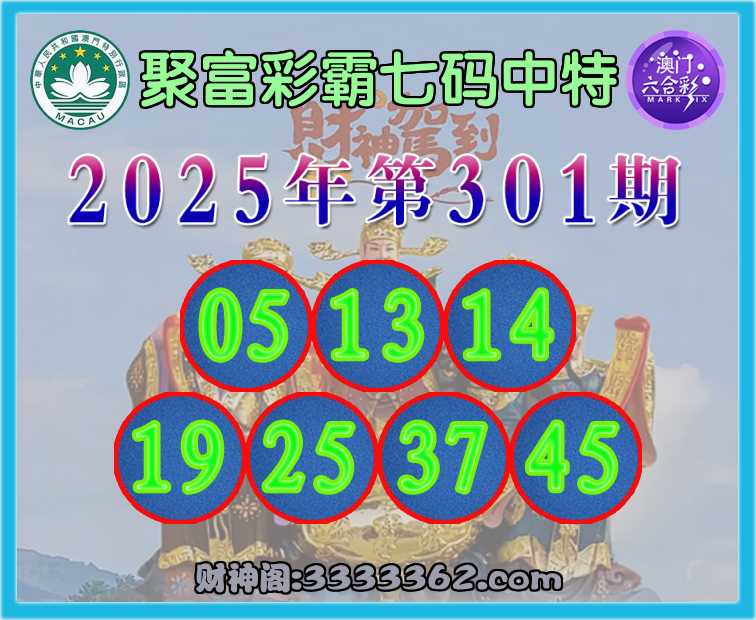 301期:〖聚富彩霸〗 ✌️七码中特✌️【05.13.14.19.25.37.45】开:05