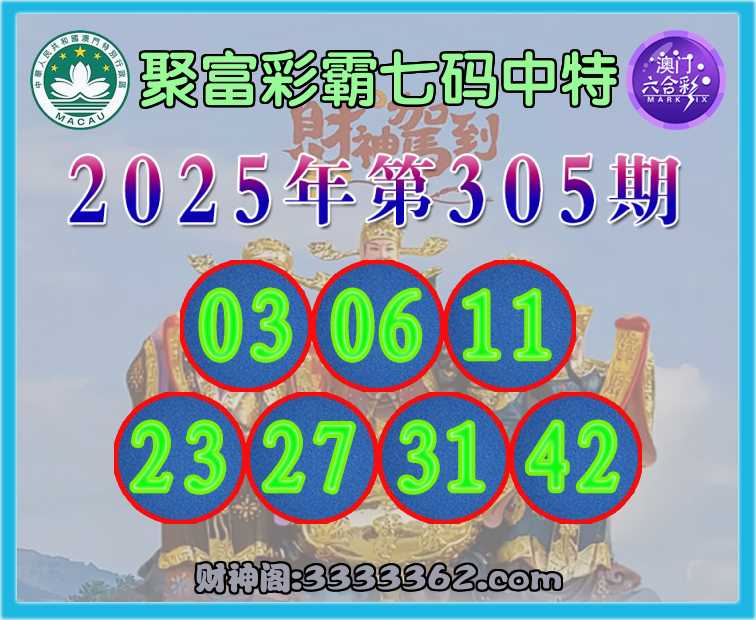 305期:〖聚富彩霸〗 ✌️七码中特✌️【03.06.11.23.27.31.42】开:42