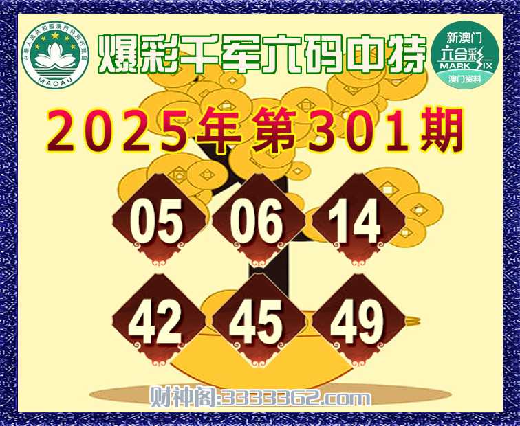 301期:『爆彩千军』 👉六码中特👉【05.06.14.42.45.49】开:05