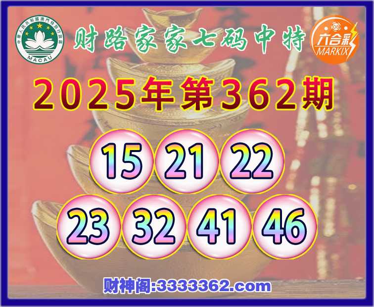362期: 财路家家 🧩七码中特🧩【15.21.22.23.32.41.46】开:23