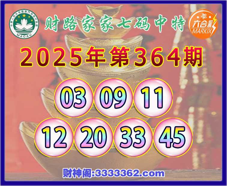 364期: 财路家家 🧩七码中特🧩【03.09.11.12.20.33.45】开:12