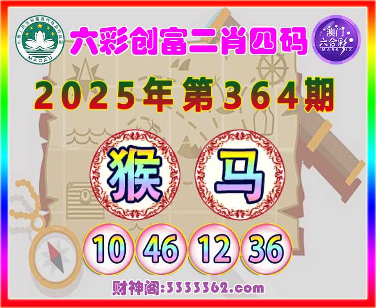 364期:【六彩创富】 🥠二肖四码🥠【猴】【10.46.12.36】开:马12
