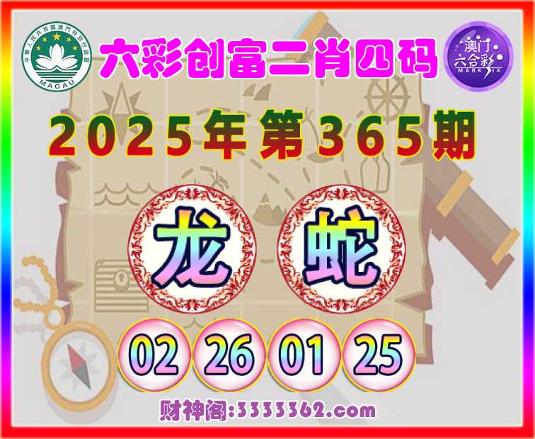 365期:【六彩创富】 🥠二肖四码🥠【蛇】【02.26.01.25】开:龙26