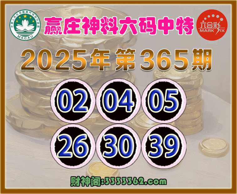 365期:【赢庄神料】 🎉六码中特🎉【02.04.05.26.30.39】开:26