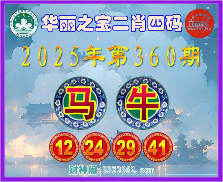360期:『华丽之宝』 👩‍🌾二肖四码👩‍🌾【马】【12.24.29.41】开:牛41
