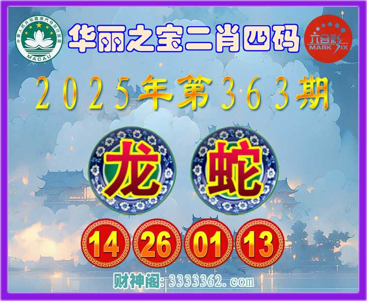 363期:『华丽之宝』 👩‍🌾二肖四码👩‍🌾【蛇】【14.26.01.13】开:龙26