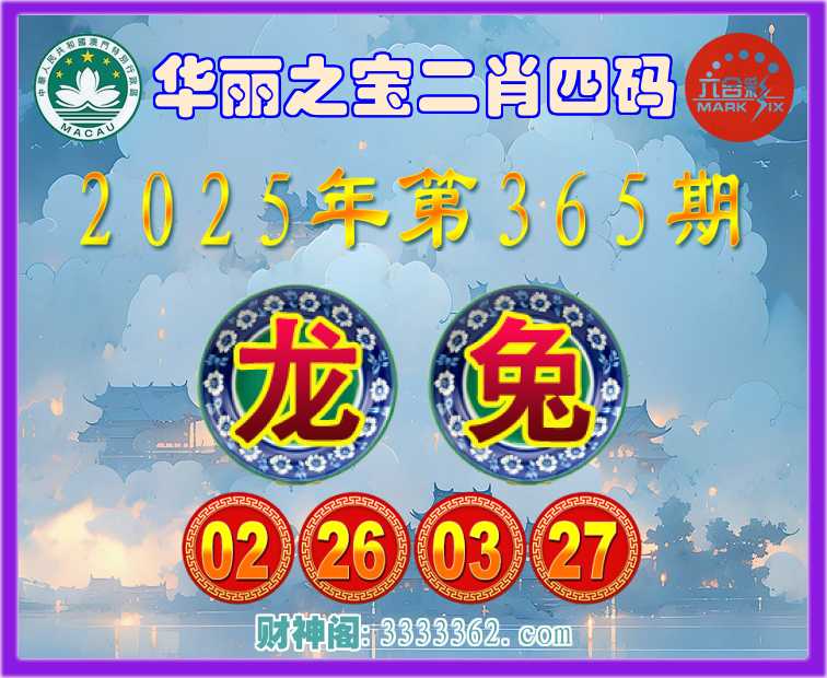 365期:『华丽之宝』 👩‍🌾二肖四码👩‍🌾【兔】【02.26.03.27】开:龙26