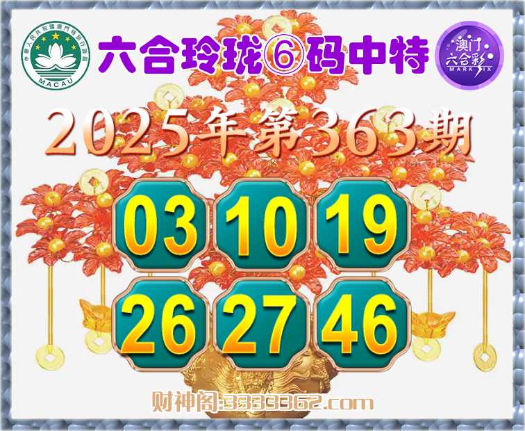 363期:『六合玲珑』 🍁⑥码中特🍁【03.10.19.26.27.46】开:26