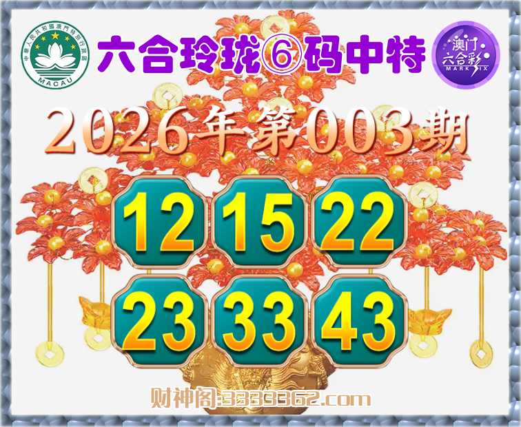 003期:『六合玲珑』 🍁⑥码中特🍁【12.15.22.23.33.43】开:00准