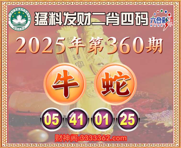 360期:《猛料发财》 🍅二肖四码🍅【蛇】【05.41.01.25】开:牛41