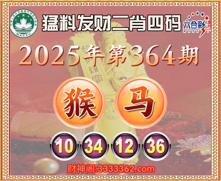 364期:《猛料发财》 🍅二肖四码🍅【猴】【10.34.12.36】开:马12