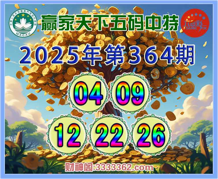 364期:【赢家天下】 🀄五码中特🀄【04.09.12.22.26】开:12