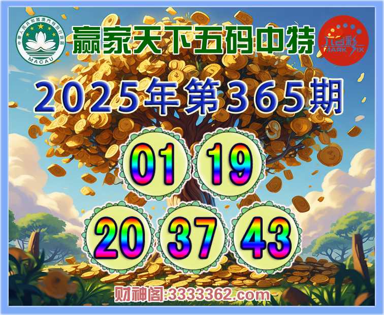 365期:【赢家天下】 🀄五码中特🀄【01.19.20.37.43】开:00准