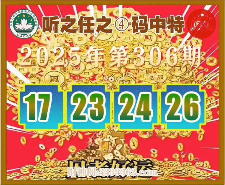 306期:『听之任之』 🏇④码中特🏇【17.23.24.26】开:17